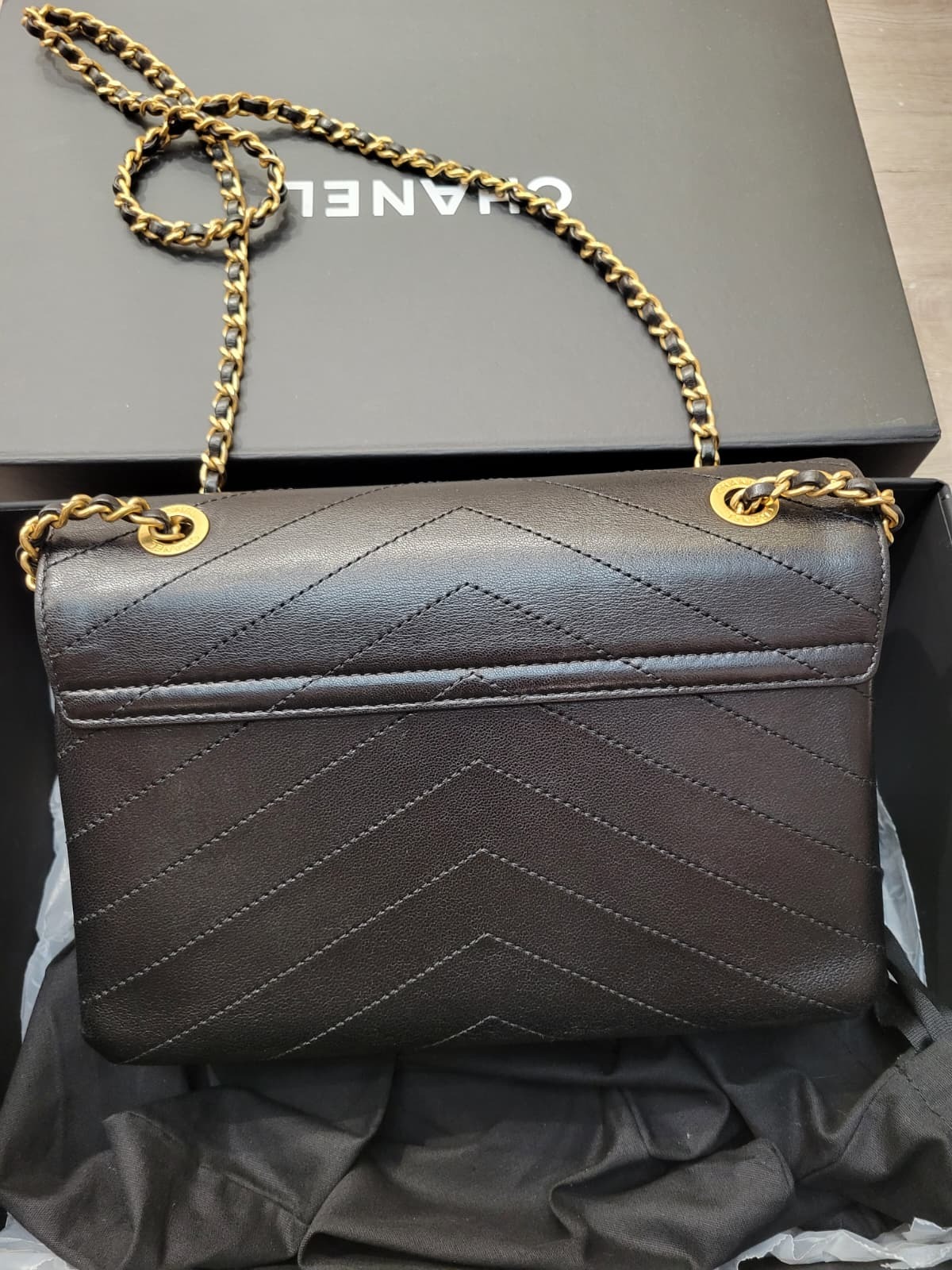 99%NEW CHANEL A57431 FLAP BAG BLACK GOLD CAVIAR