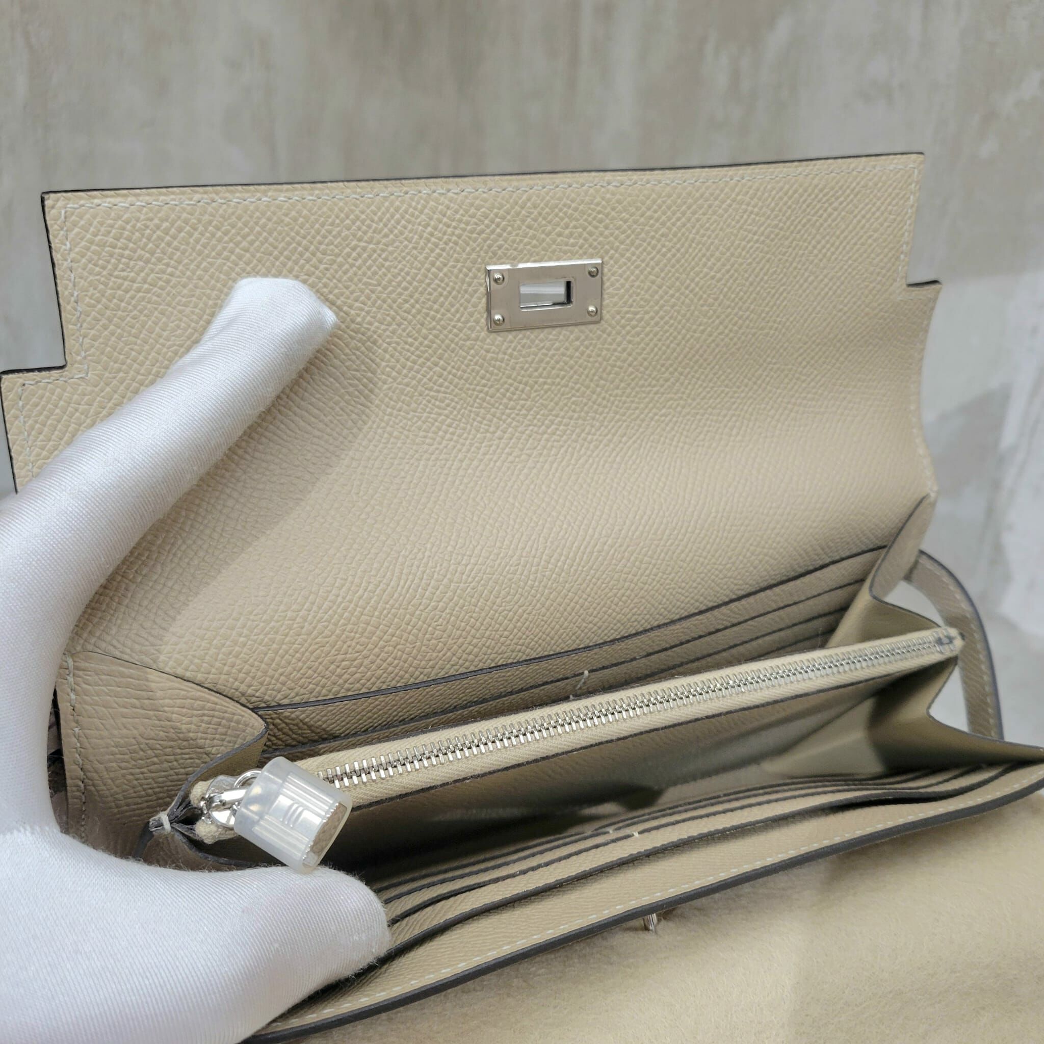 99%NEW HERMES KELLY WALLET S2 TRENCH CK 風衣灰 銀扣