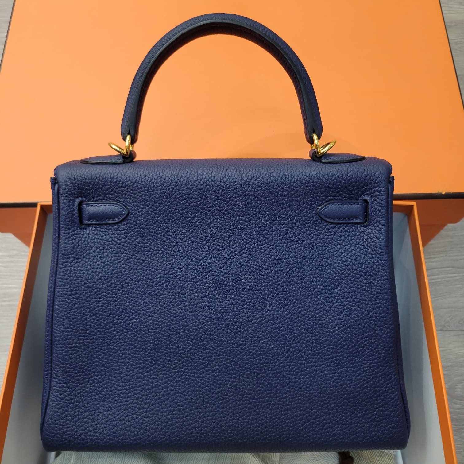 99% HERMES KELLY 25 BLEU SAPPHIRE CC TOGO 寶石藍金扣