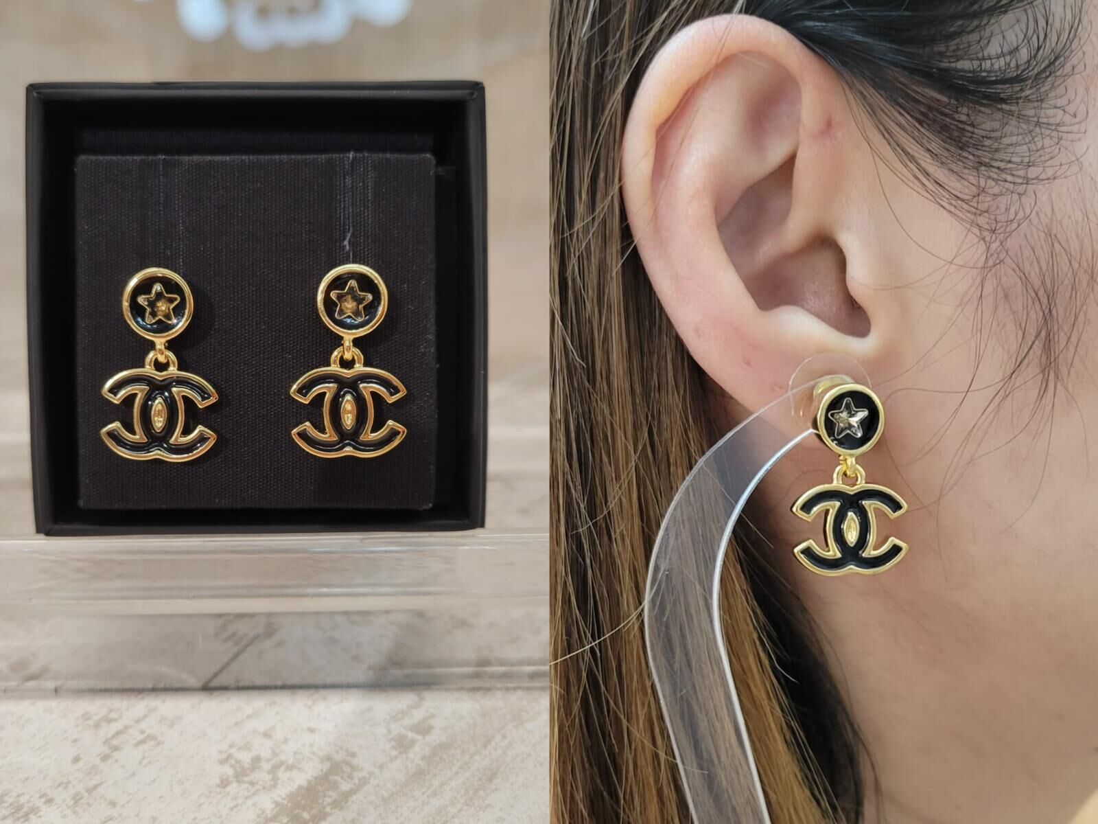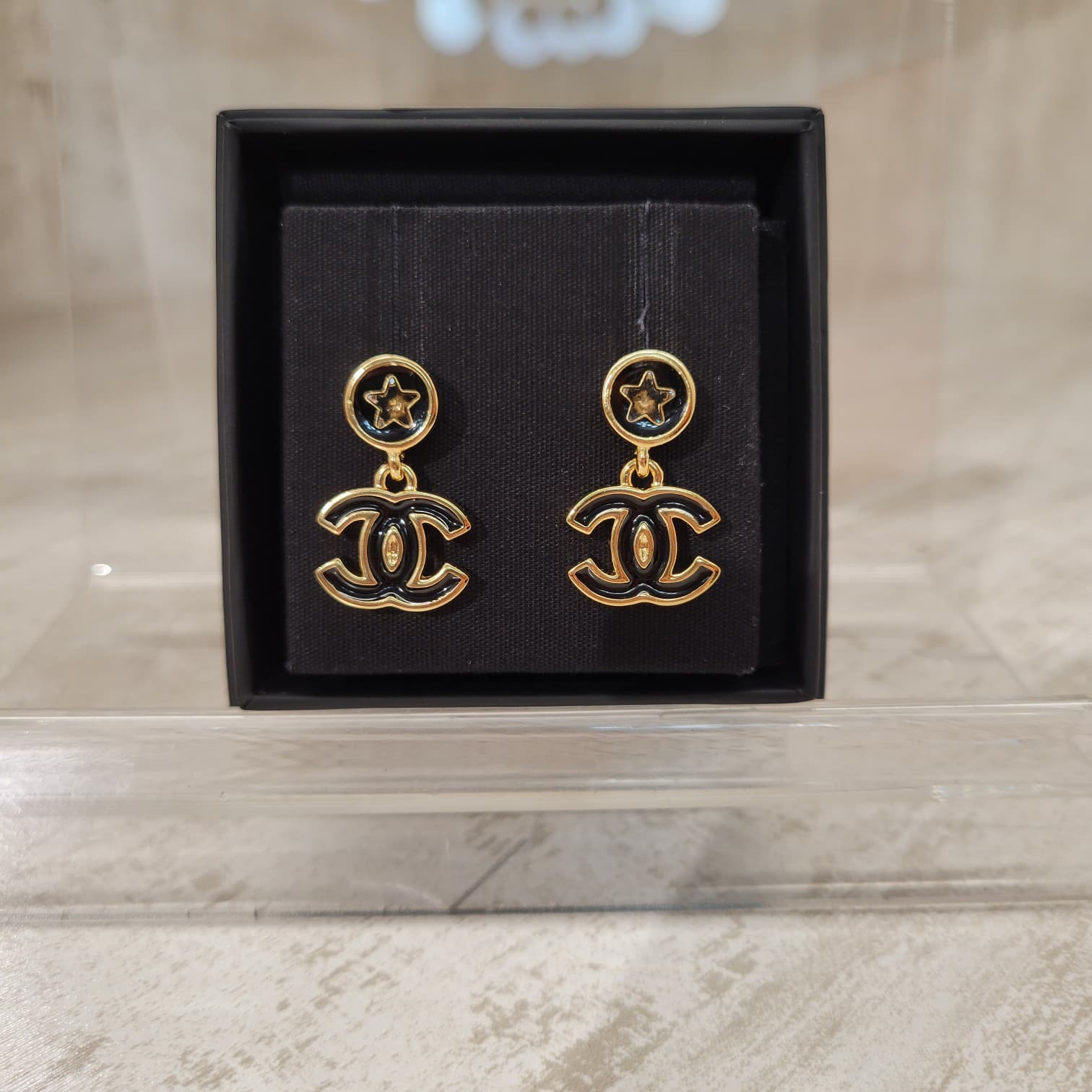 CHANEL ABG524 DROP EARRINGS STAR BLACK GOLD 黑色星星垂吊款耳環