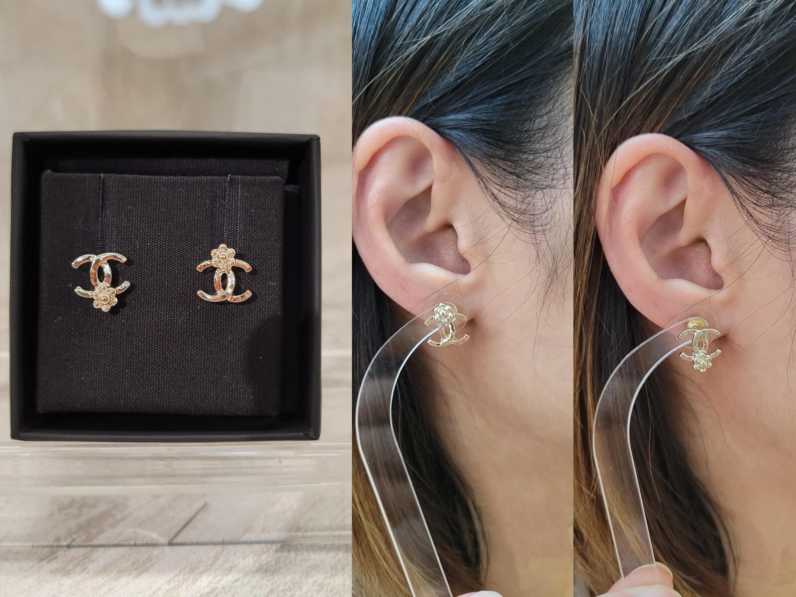 CHANEL ABG791 EARRINGS GOLD FLOWER 1.1CM 淡金 上下不對稱花款 耳環
