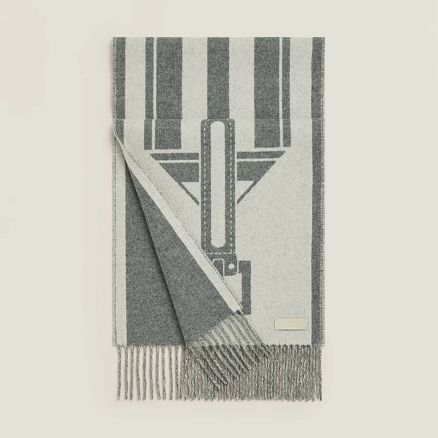 HERMES Casaque Les Sangles muffler ivoire / gris flanelle 圍巾 頸巾