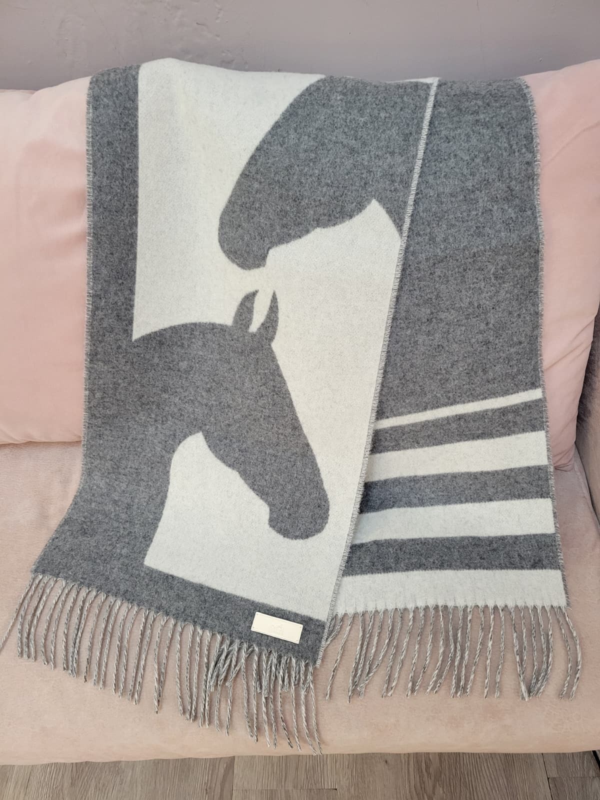 Hermes Casaque Love Story muffler Gris/Ivoire LEATHER TAG 頸巾 圍巾 新款皮革tag