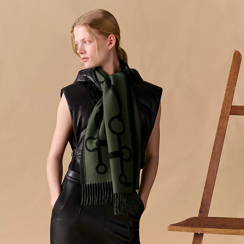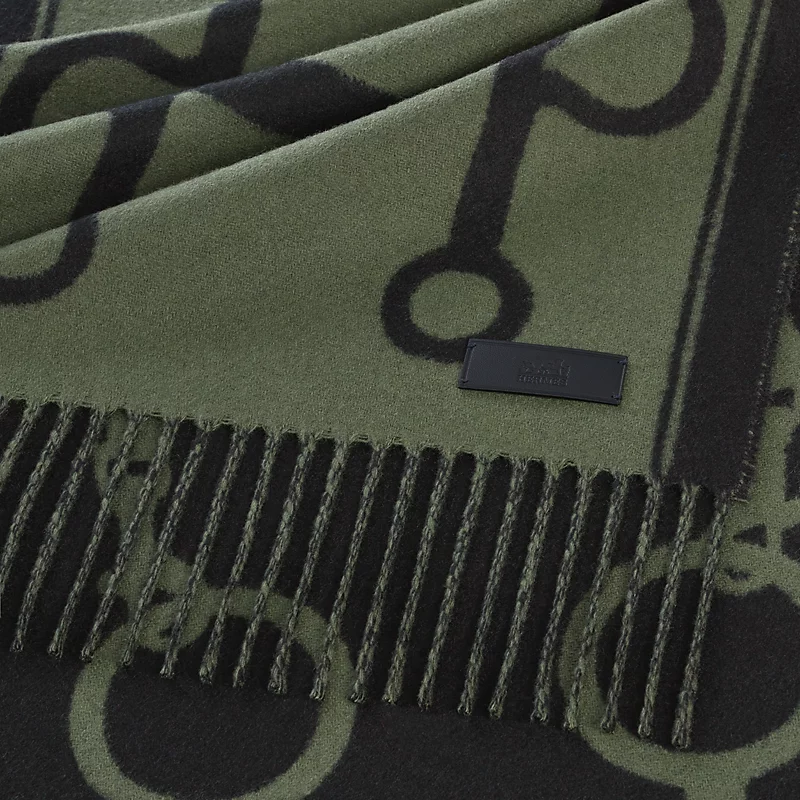 HERMES Casaque Mors scarf vert camouflage / noir (MUFFLER) 頸巾/ 圍巾