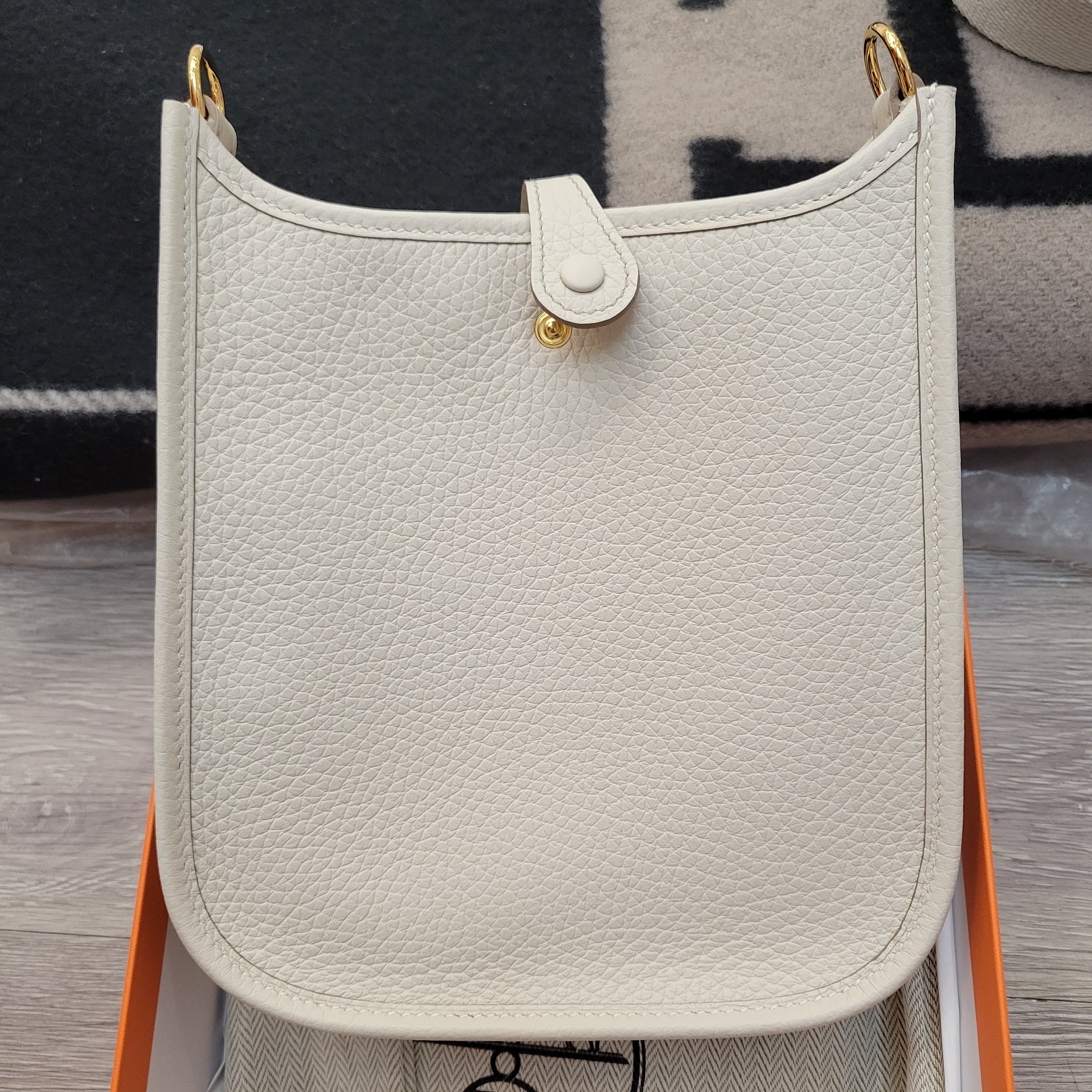 HERMES MINI EVELYNE 10 craie CC 奶昔白金扣 110CM