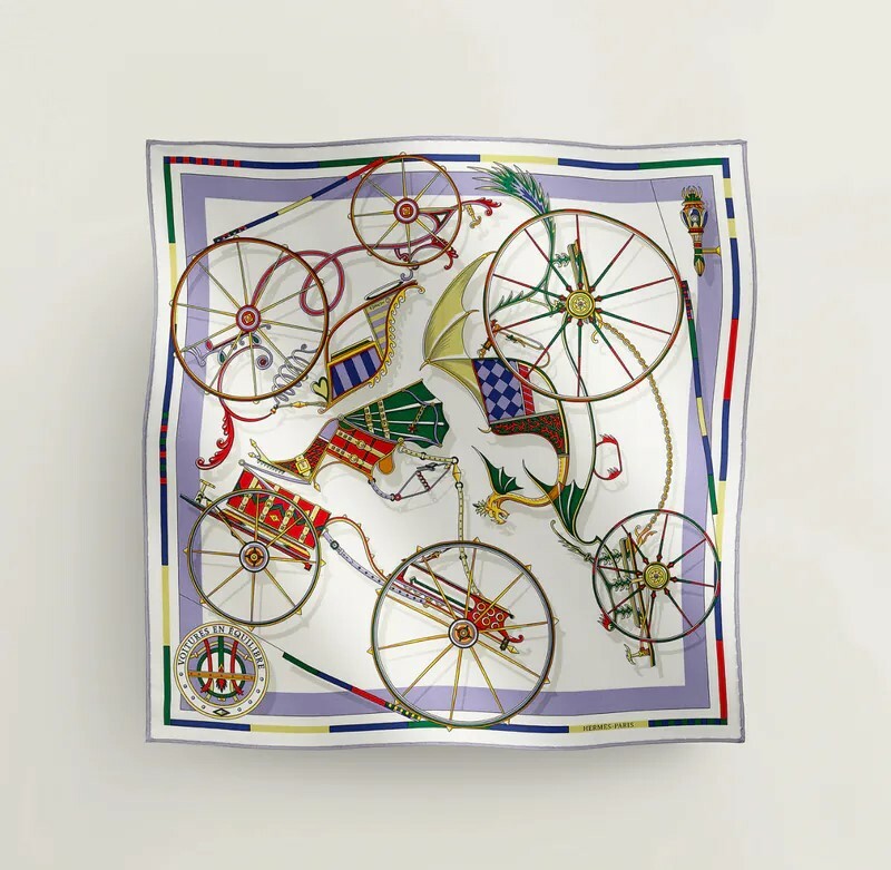 HERMES Voitures en Equilibre scarf 45 Blanc / Mauve / Vert