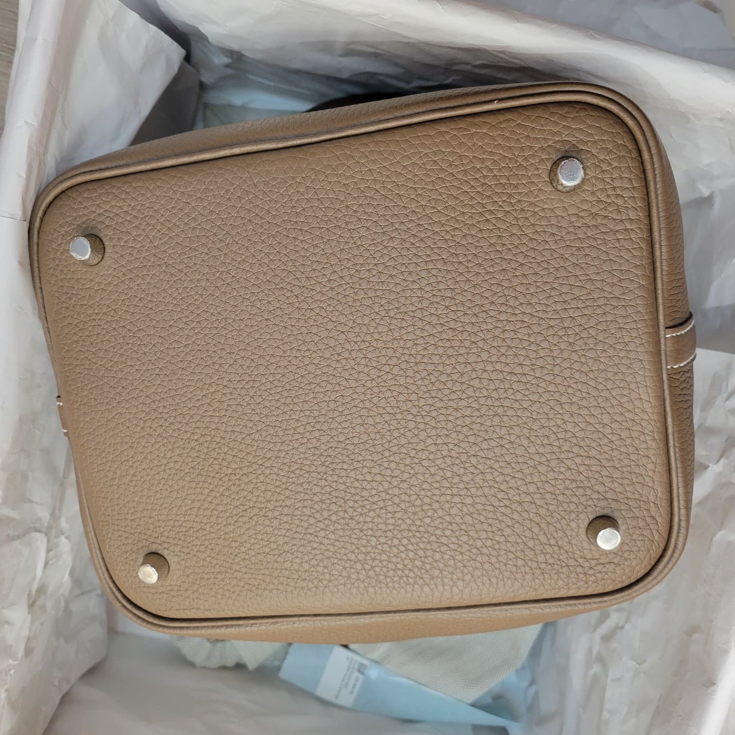 99%/UNUSED HERMES PICOTIN 22 ETOUPE CK 大象灰銀扣