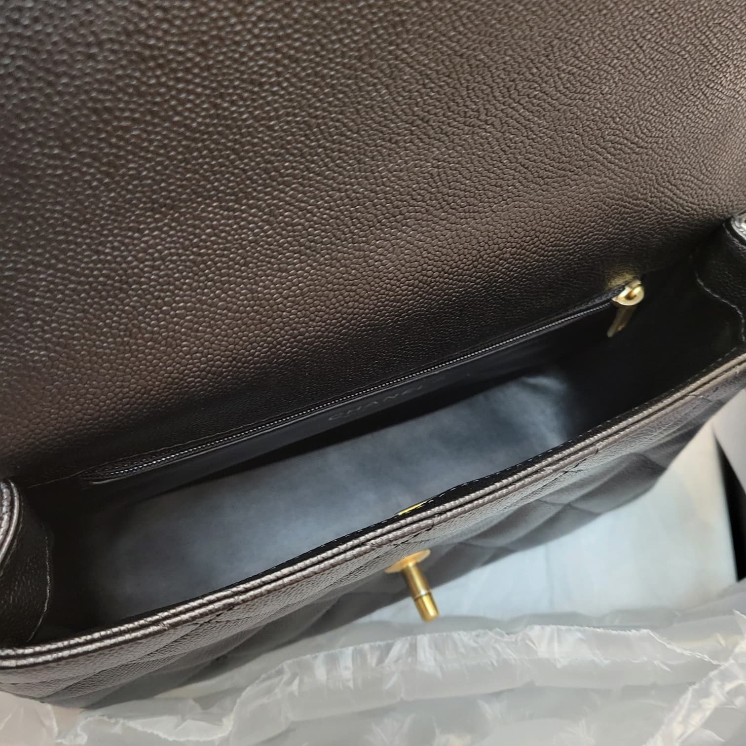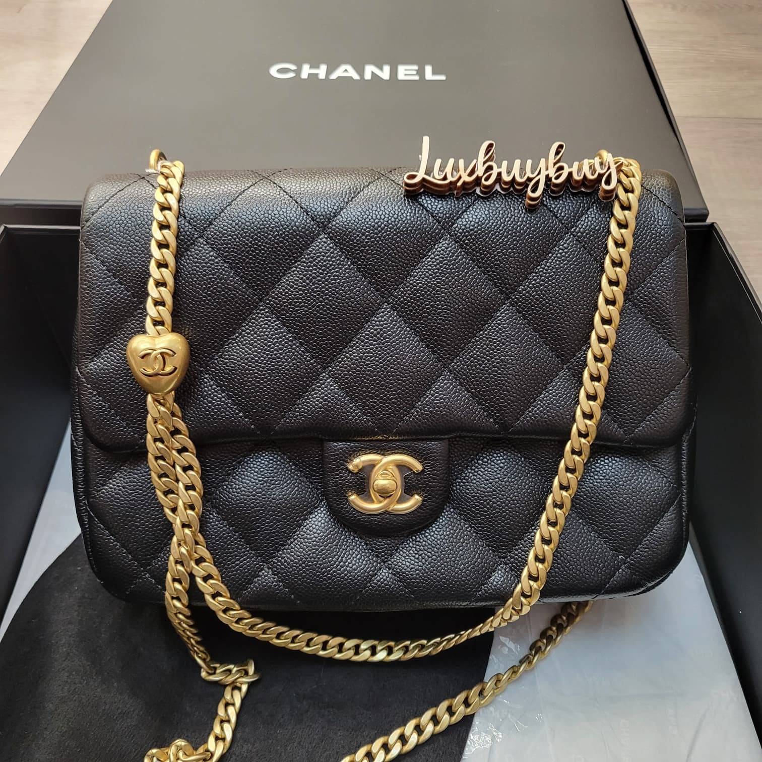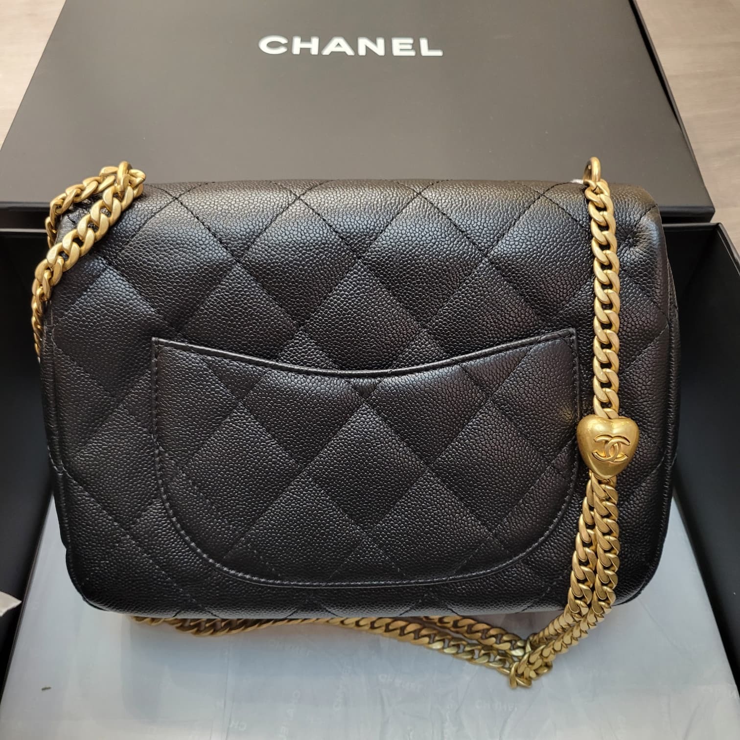 99%/UNUSED CHANEL AS3921 23Cm BLACK GOLD WITH HEART CLIP 黑金 心型調節扣 牛皮
