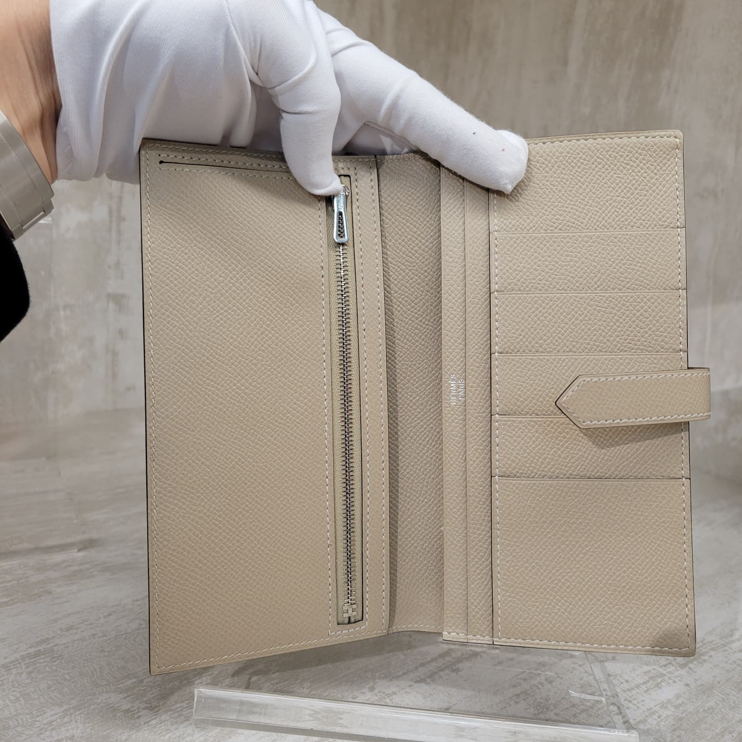 99%/UNUSED HERMES BEARN WALLET S2 TRENCH CK 風衣灰銀扣