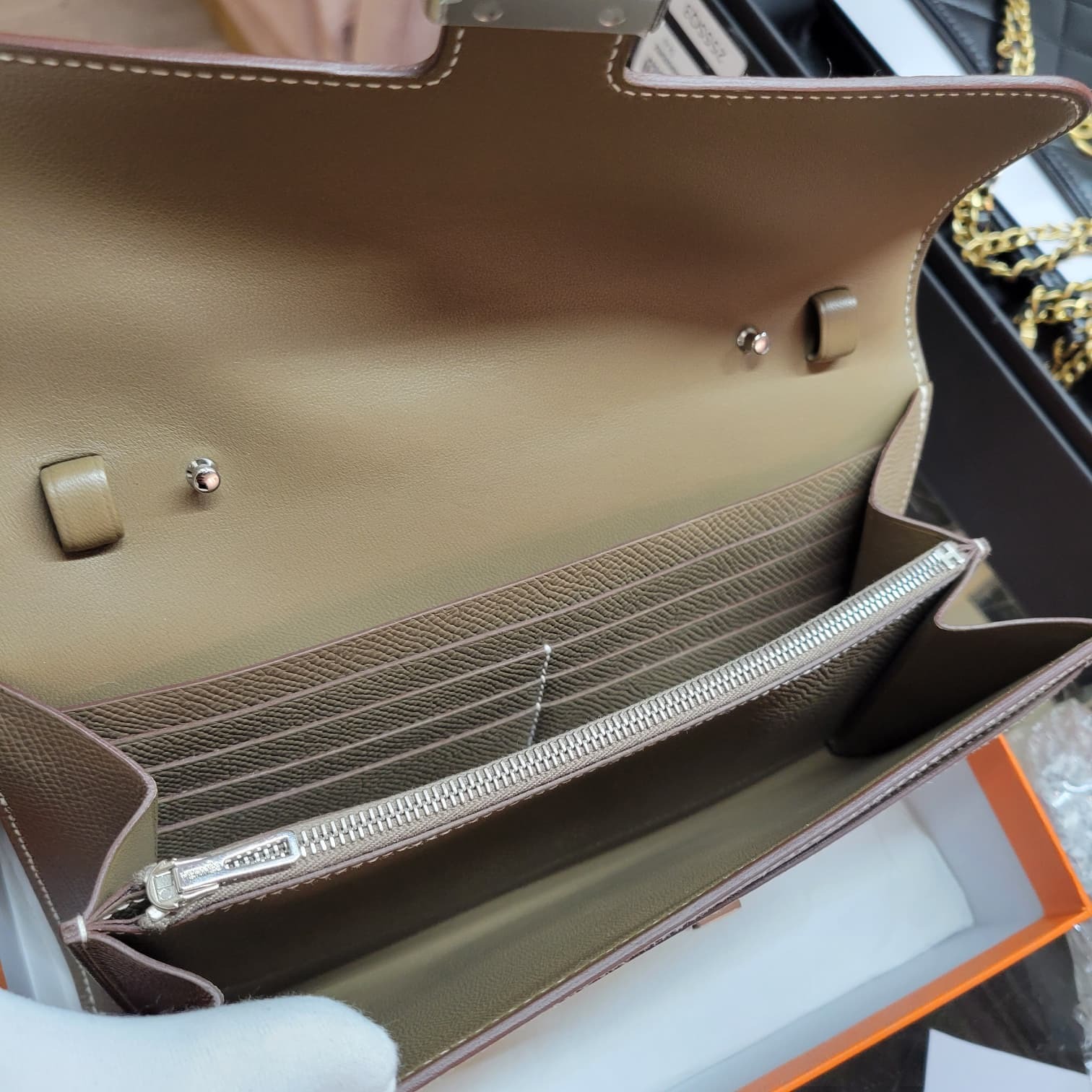 99%/UNUSED HERMES CONSTANCE TO GO ETOUPE CK 大象灰銀扣
