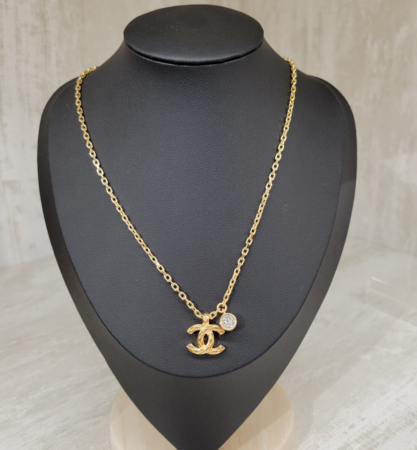 CHANEL ABH256 NECKLACE GOLD LOGO 41.5CM+7CM 菱格紋 logo 頸鏈