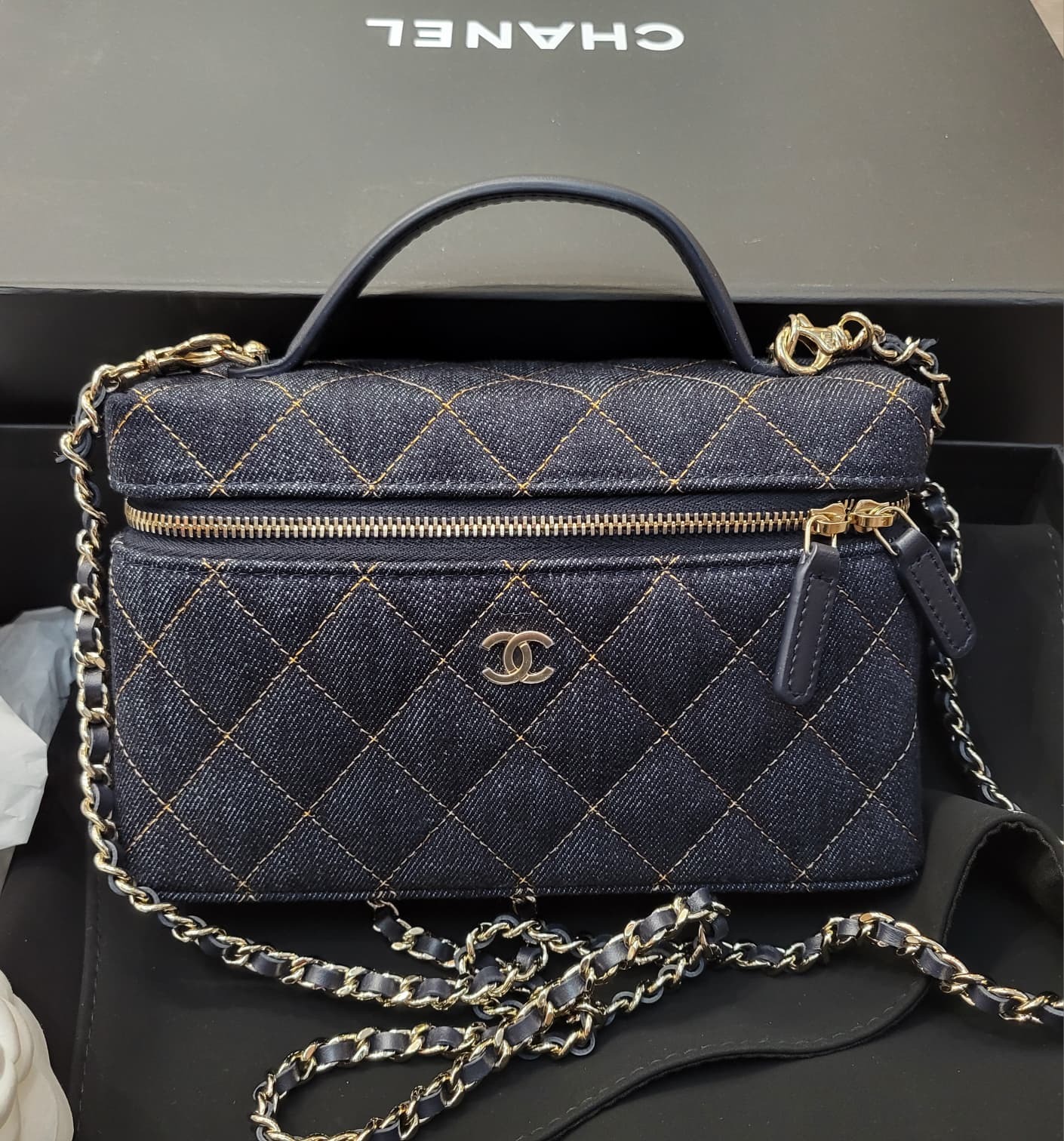 CHANEL AP4385 DEMIN 19CM LIGHT GOLD 深藍牛仔布 淡金