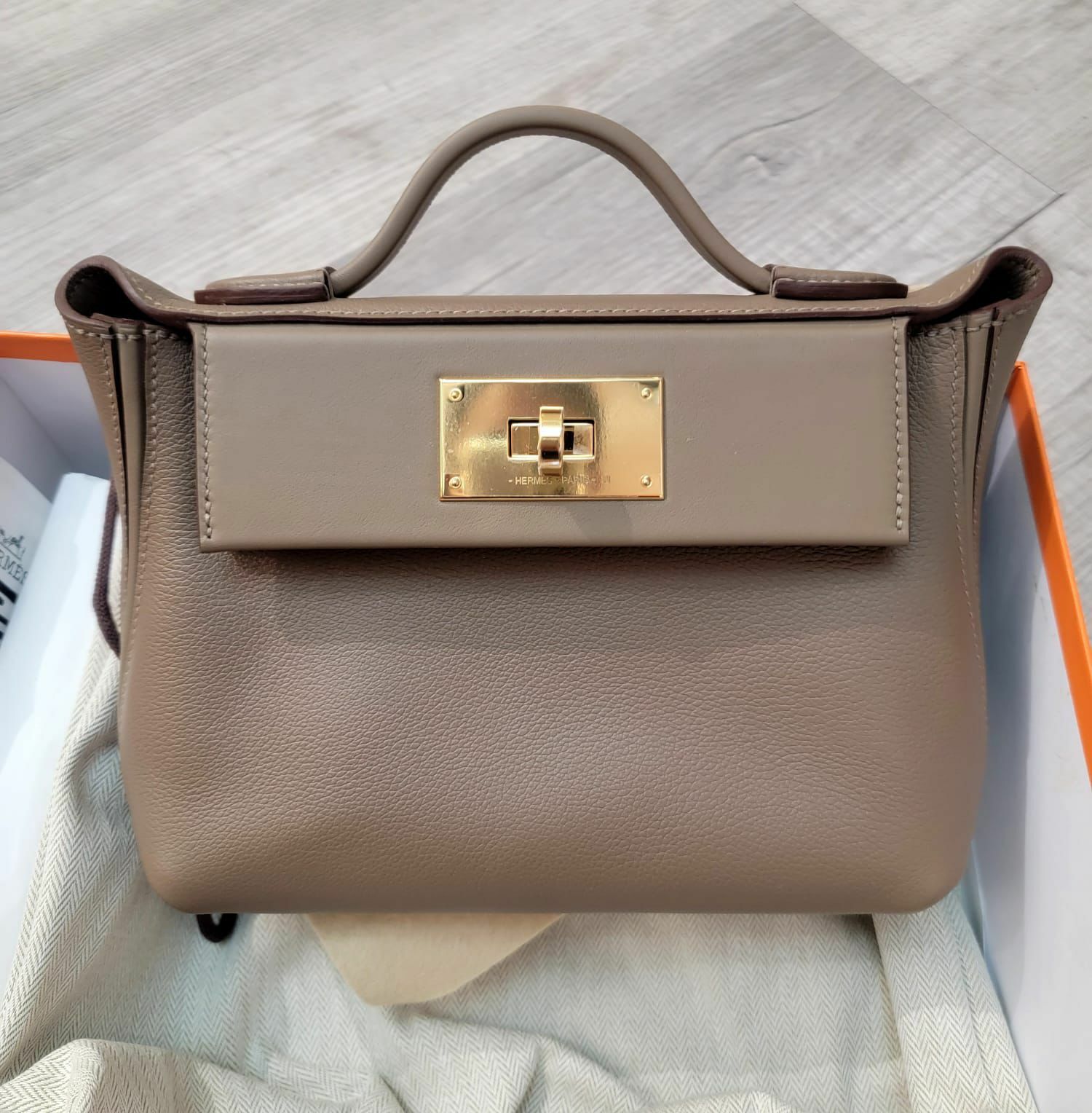 Hermes mini 2424 Etoupe cc evercolor/swift 大象灰金扣