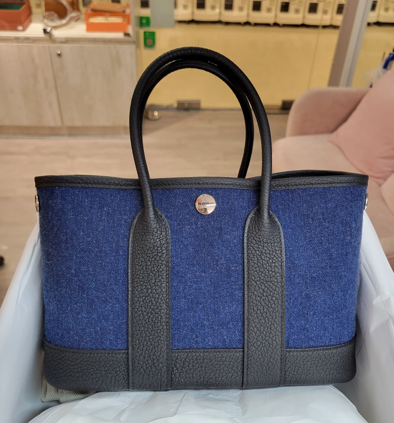 HERMES NEO GARDEN PARTY 23 DENIM MOYEN/NOIR CK 深藍牛仔/黑色