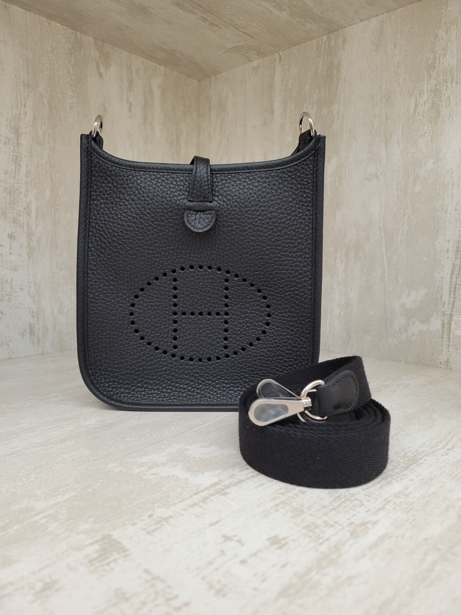 HERMES mini evelyne NOIR CK 110CM 黑銀