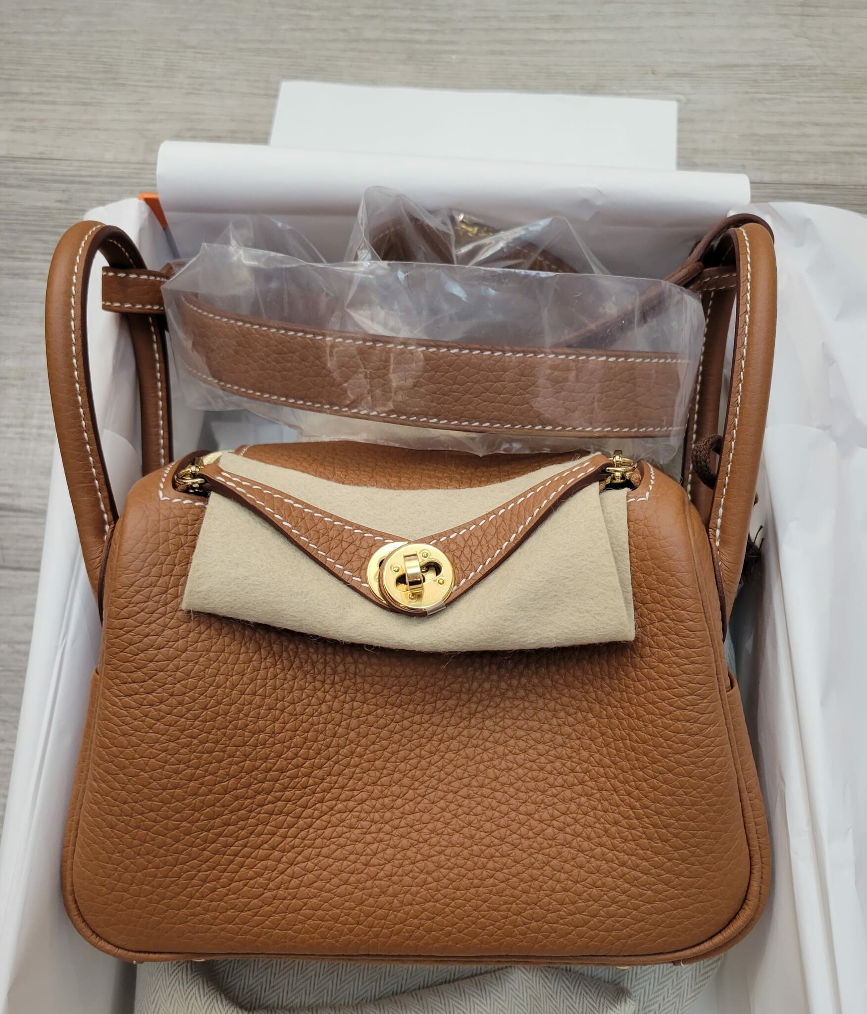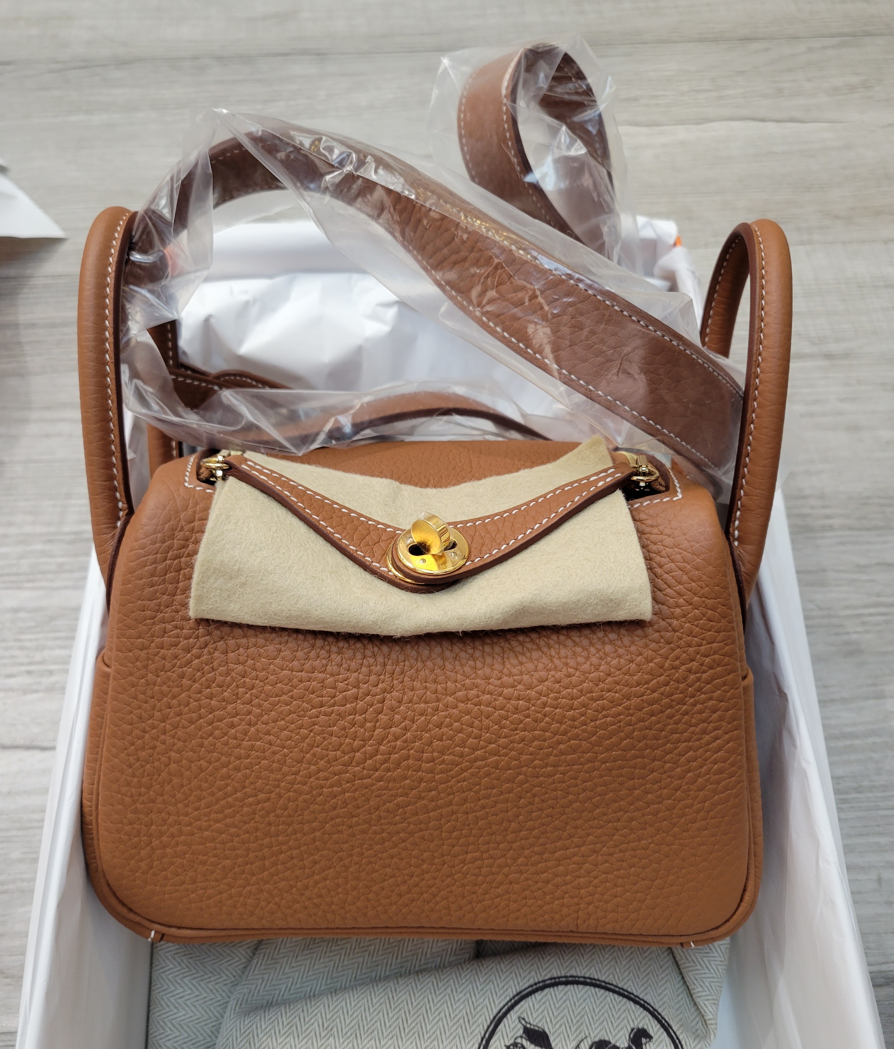HERMES Mini Lindy 37 Gold CC 金棕 金扣