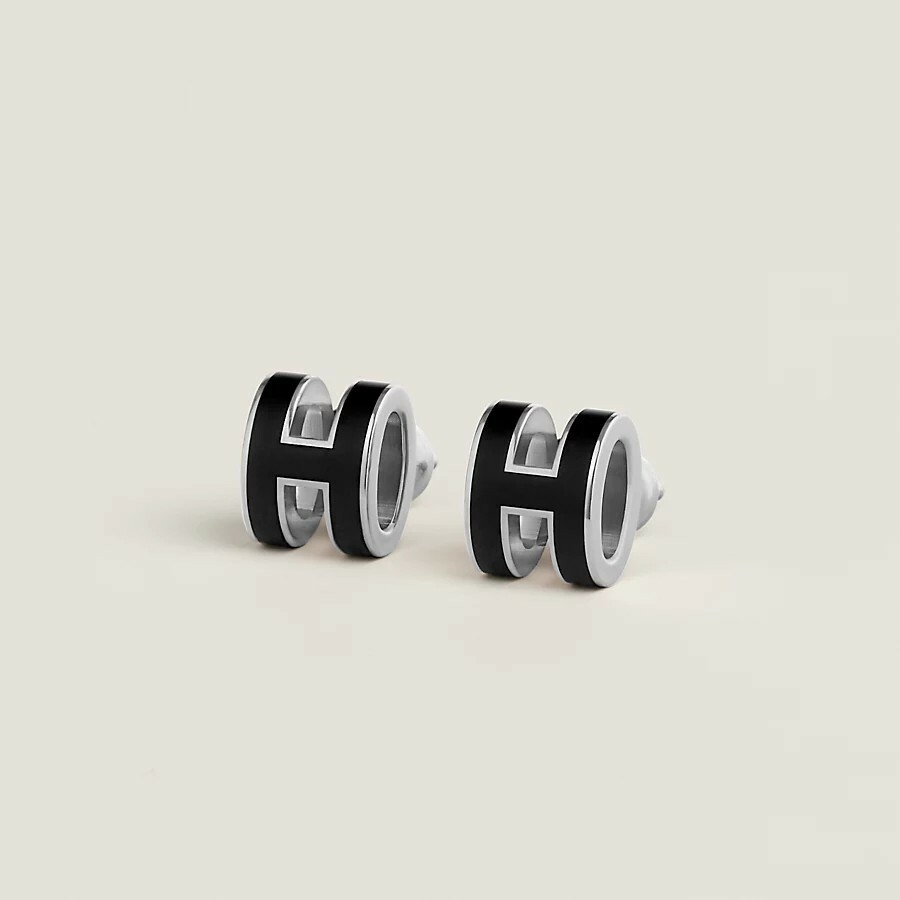 HERMES Mini pop h earrings noir P 耳環 黑 銀