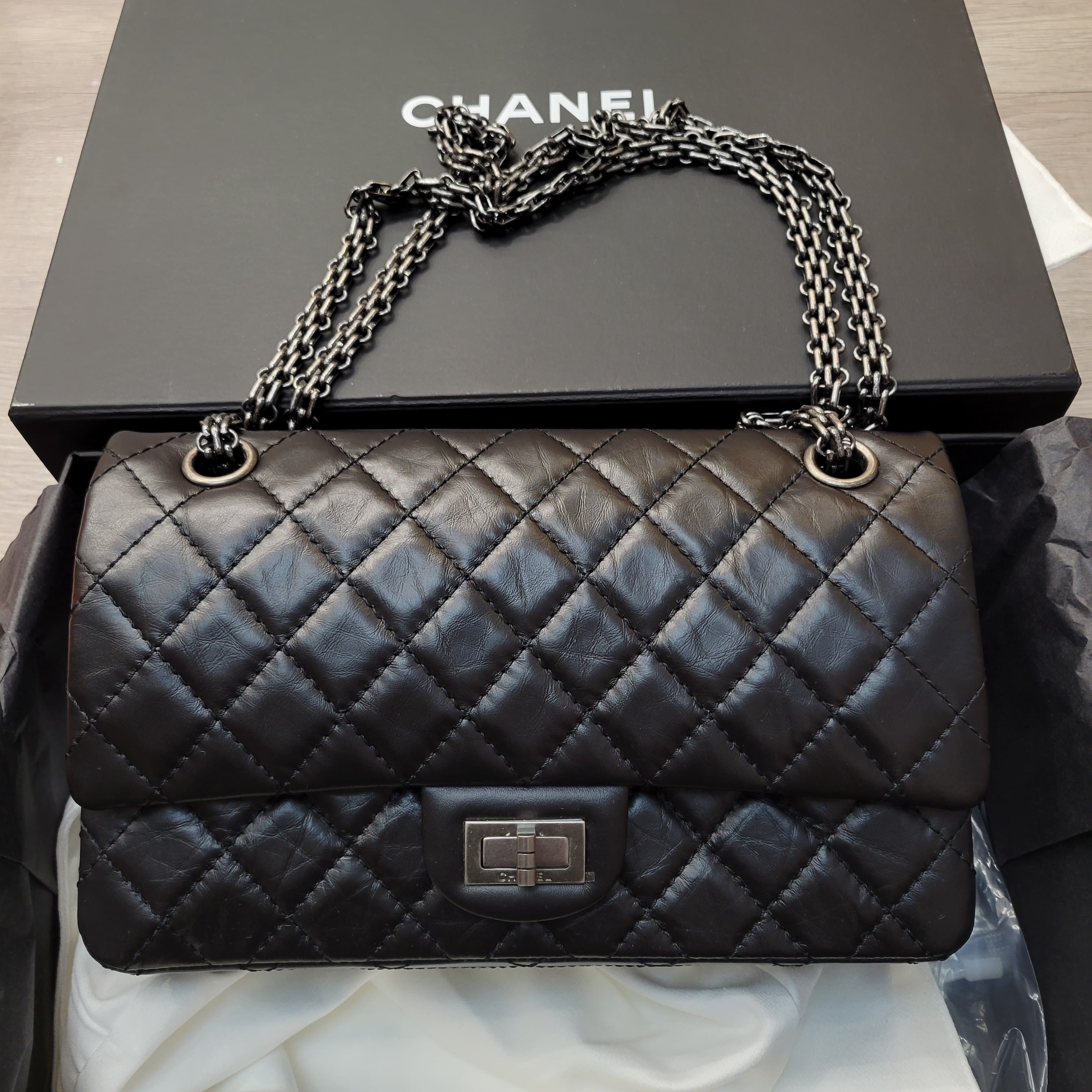 UNUSED CHANEL A37586 2.55 SMALL BLACK SILVER 黑銀
