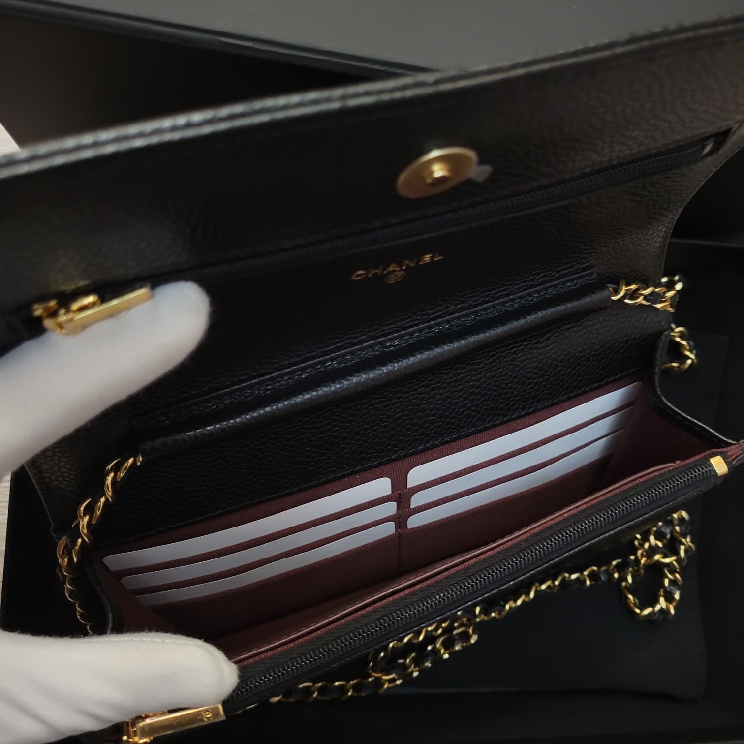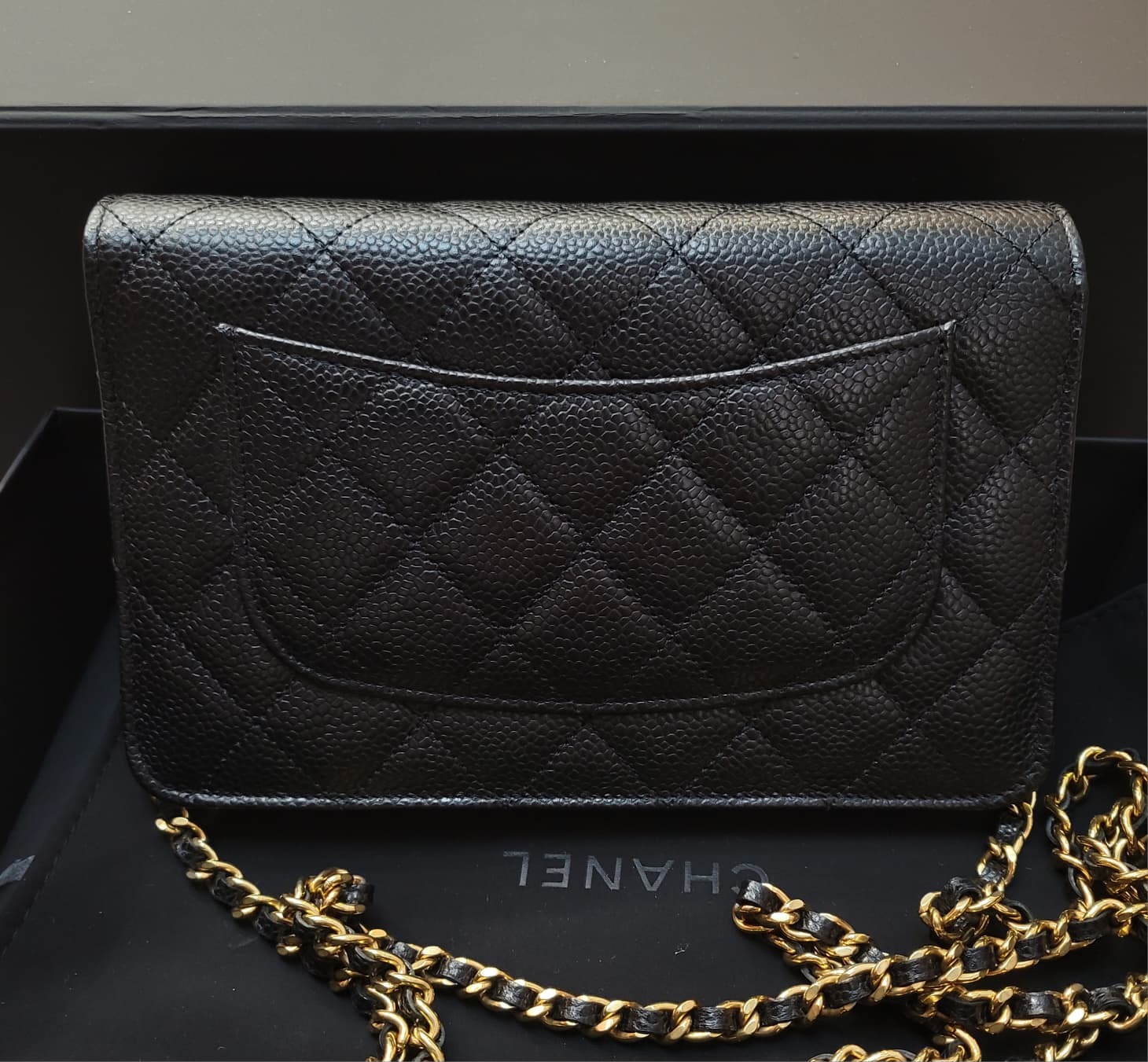 Unused Chanel AP0250 wallet on chain black caviar 黑色荔枝皮金扣
