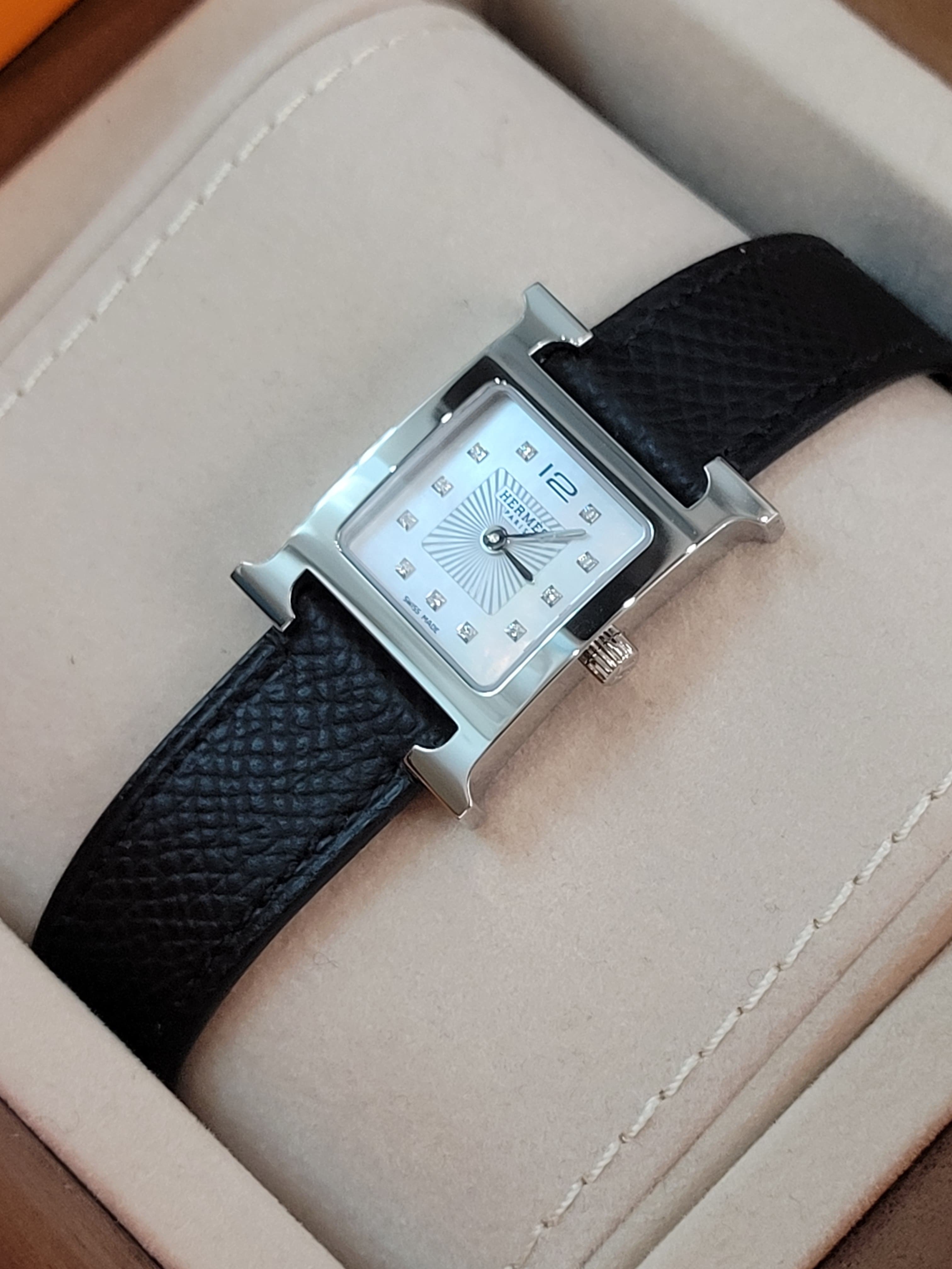 Hermes heure h WATCH noir p with 11 dia 黑銀11鑽石small model