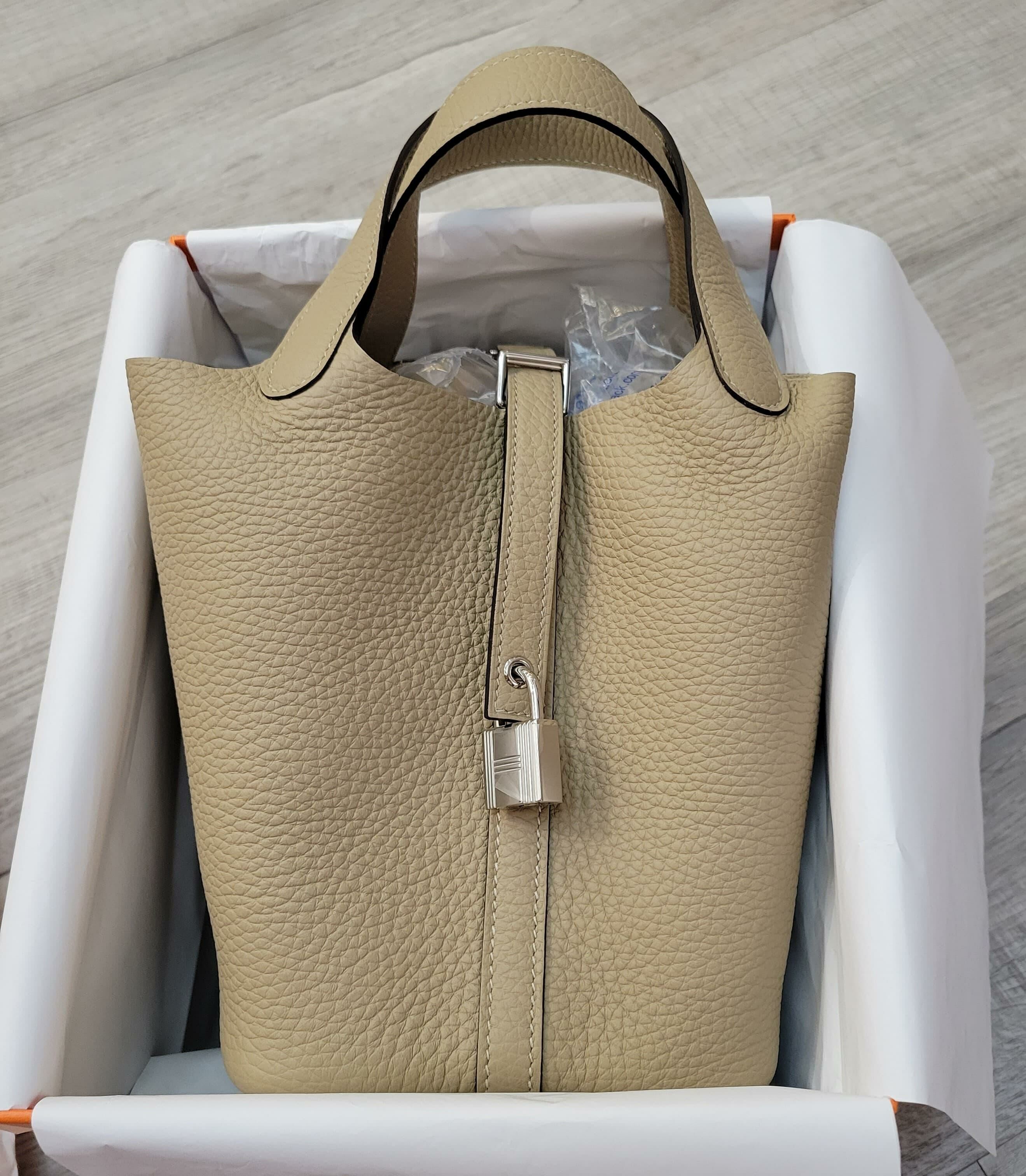 Hermes picotin 18 s2 trench ck 風衣灰銀扣